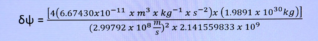Which the final result is “Delta Psi” = .000002759 Radians = .568885952 arc seconds.