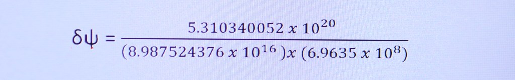 ”Delta Psi” is now .000008485 Radians or 1.750168263 arc seconds. Math verified.