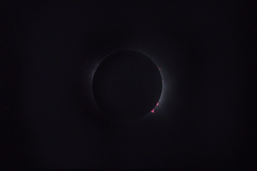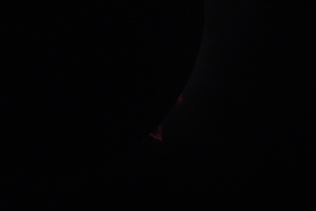 This is what each image looked like before stacking and processing (cropped). I saw this for about three seconds or so, tripped the shutters and had to coax the above final image out of twelve RAW images. Then it clouded up for several minutes and then I got a few seconds for imaging just after Baily’s Beads (below). Again it was through dense clouds.