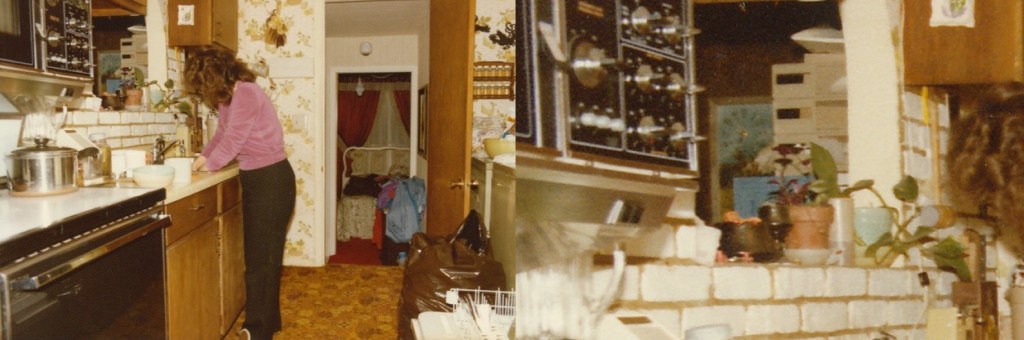 Louvered doors were located where the photographer was standing when this image was taken. The light could not have come through the tiny opening above the sink. You can see a clock on the wall in the other room. Nor through the doorway because it would have cast Mom’s shadow on those doors. There were no roads in that direction or any yard lights. Ed.