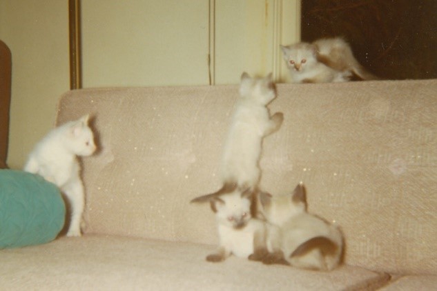 We added a mate for Pierre, named Pixie and soon the house was invaded with Siamese cats when six rambunctious kittens arrived.